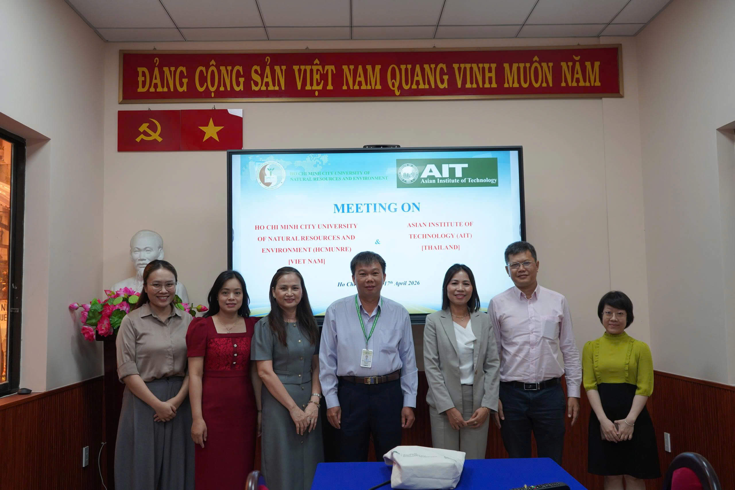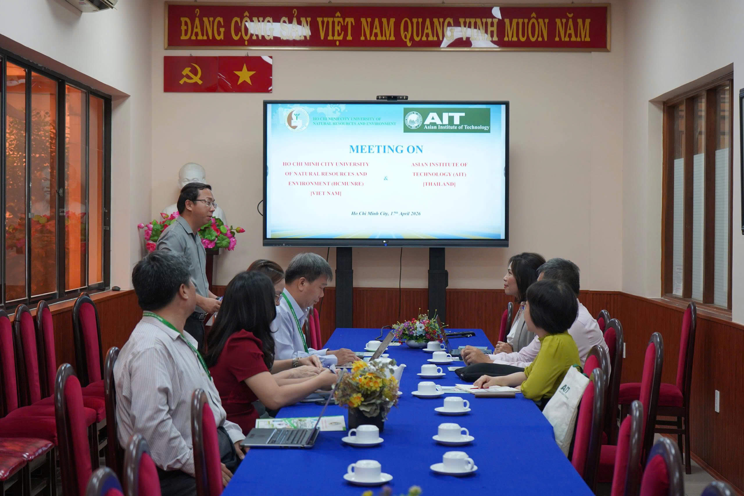 Ngày 17 tháng 04 năm 2026, Trường Đại học Tài nguyên và Môi trường Thành phố Hồ Chí Minh (HCMUNRE) đã tổ chức buổi đón tiếp và làm việc với Viện Công nghệ Châu Á (AIT). Buổi làm việc nhằm tăng cường mối quan hệ hợp tác giữa Nhà trường và đối tác quốc tế trong lĩnh vực đào tạo, nghiên cứu khoa học, đồng thời trao đổi các định hướng phát triển chương trình học và cơ hội học bổng dành cho sinh viên.