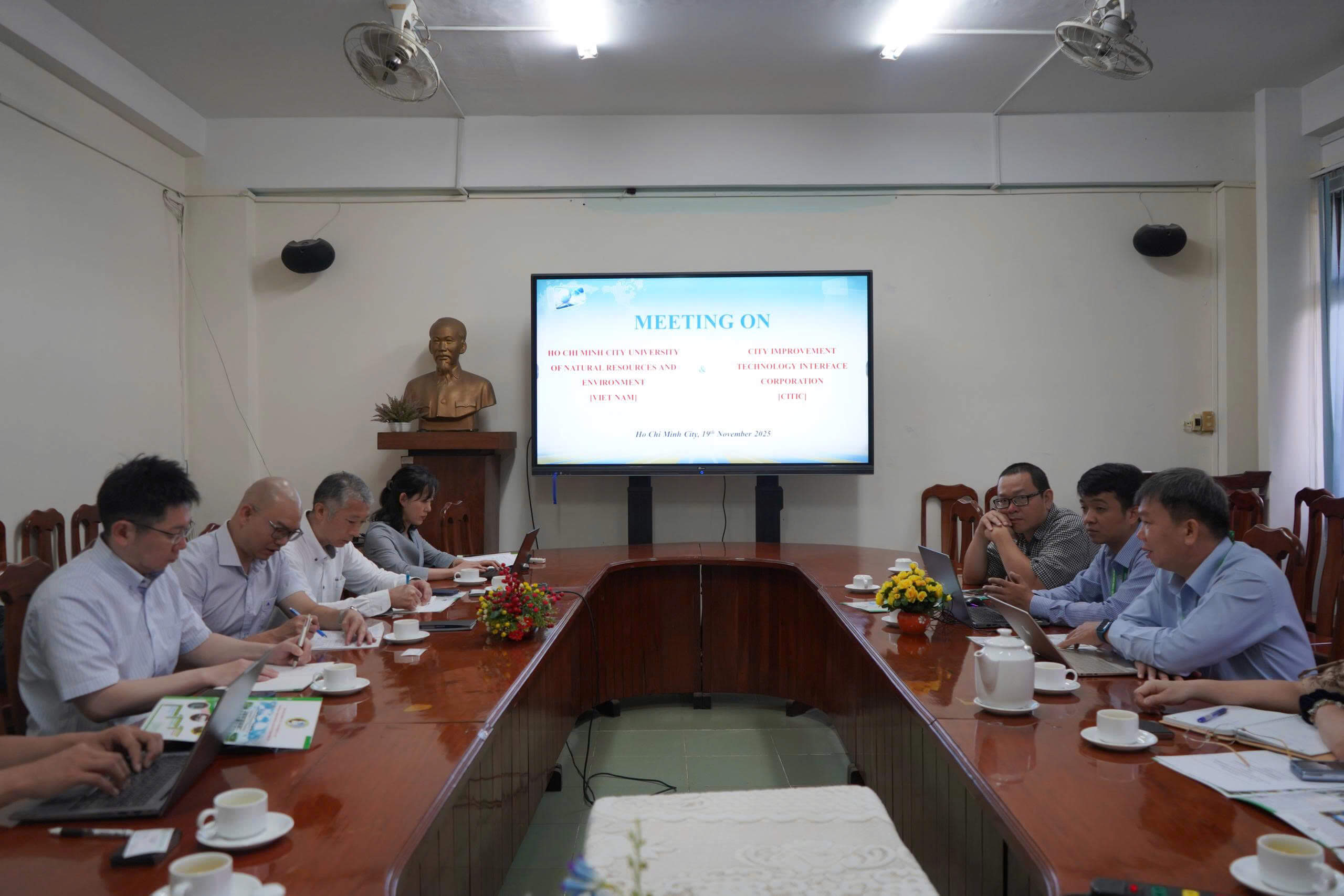 Vào ngày 19 tháng 11 năm 2025, Trường Đại học Tài nguyên và Môi trường Thành phố Hồ Chí Minh (HCMUNRE) đã tổ chức buổi đón tiếp và làm việc với Công ty Kaihatsu Management Consulting Việt Nam nhằm trao đổi và thảo luận nội dung hợp tác liên quan bùn thải sinh hoạt cho chế phẩm S-agent trong dự án “Khảo sát xác minh hoạt động kinh doanh nhằm mục tiêu phát triển bền vững ở khu vực tư nhân để nghiên cứu sản xuất và phổ biên chế phẩm thúc đẩy chức năn bể tự hoại làm từ chất thải vi sinh tại Việt Nam”